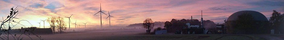 Mit modernen Maschinen werden Früchte auf dem Feld angebaut. Das meiste wird an unsere Tiere verfüttert. Ein Teil davon wird in der hofeigenen Biogasanlage mit Hilfe von Bakterien zu Methan umgewandelt und dann in einem Motor verbrannt. Der Strom wird verkauft und die Wärme zum Heizen von Ställen und Wohnhäusern verwendet.